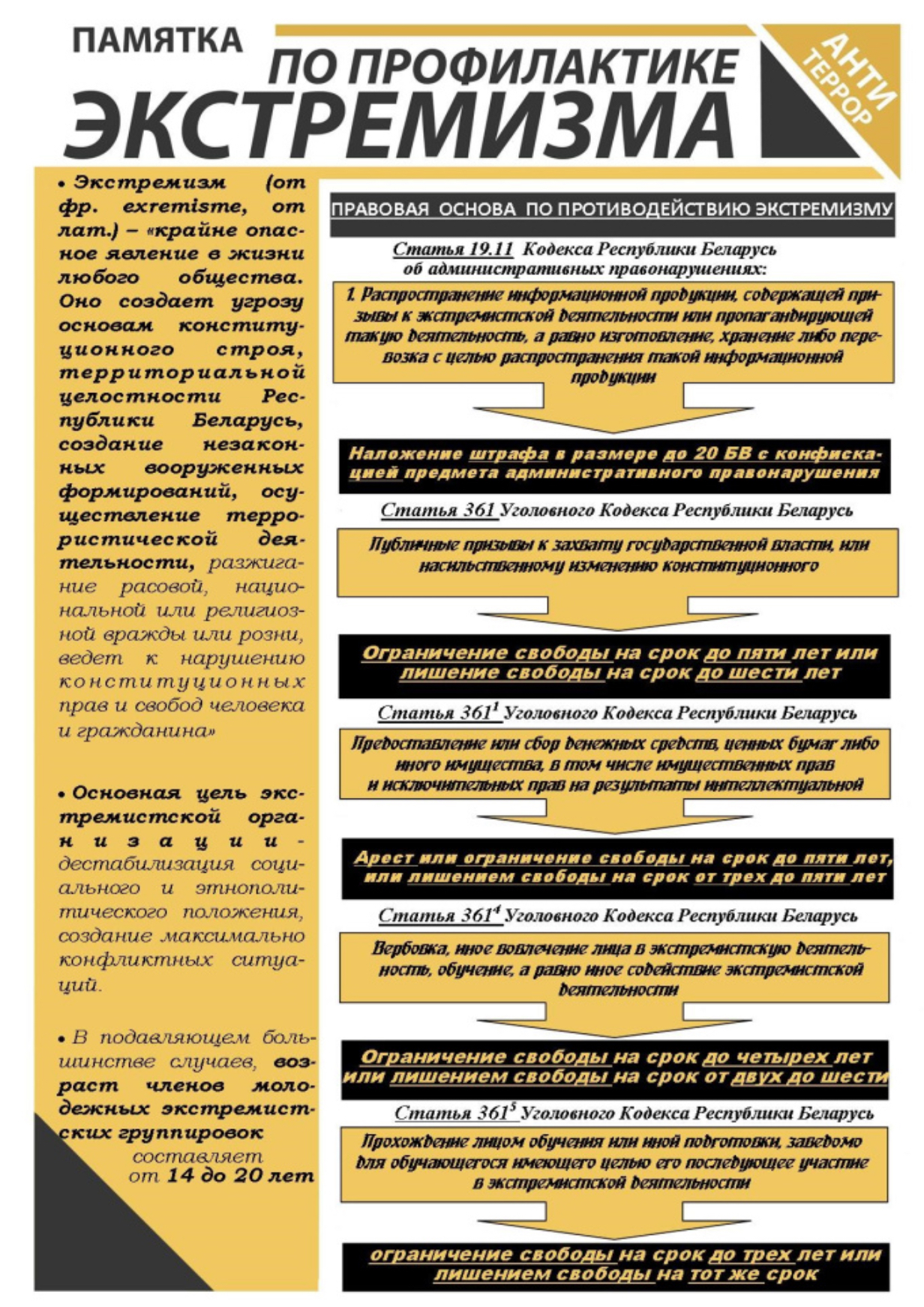 - формирование в сознании молодежи уверенности в неотвратимости наказания за экстремистскую деятельность в любых ее проявлениях;